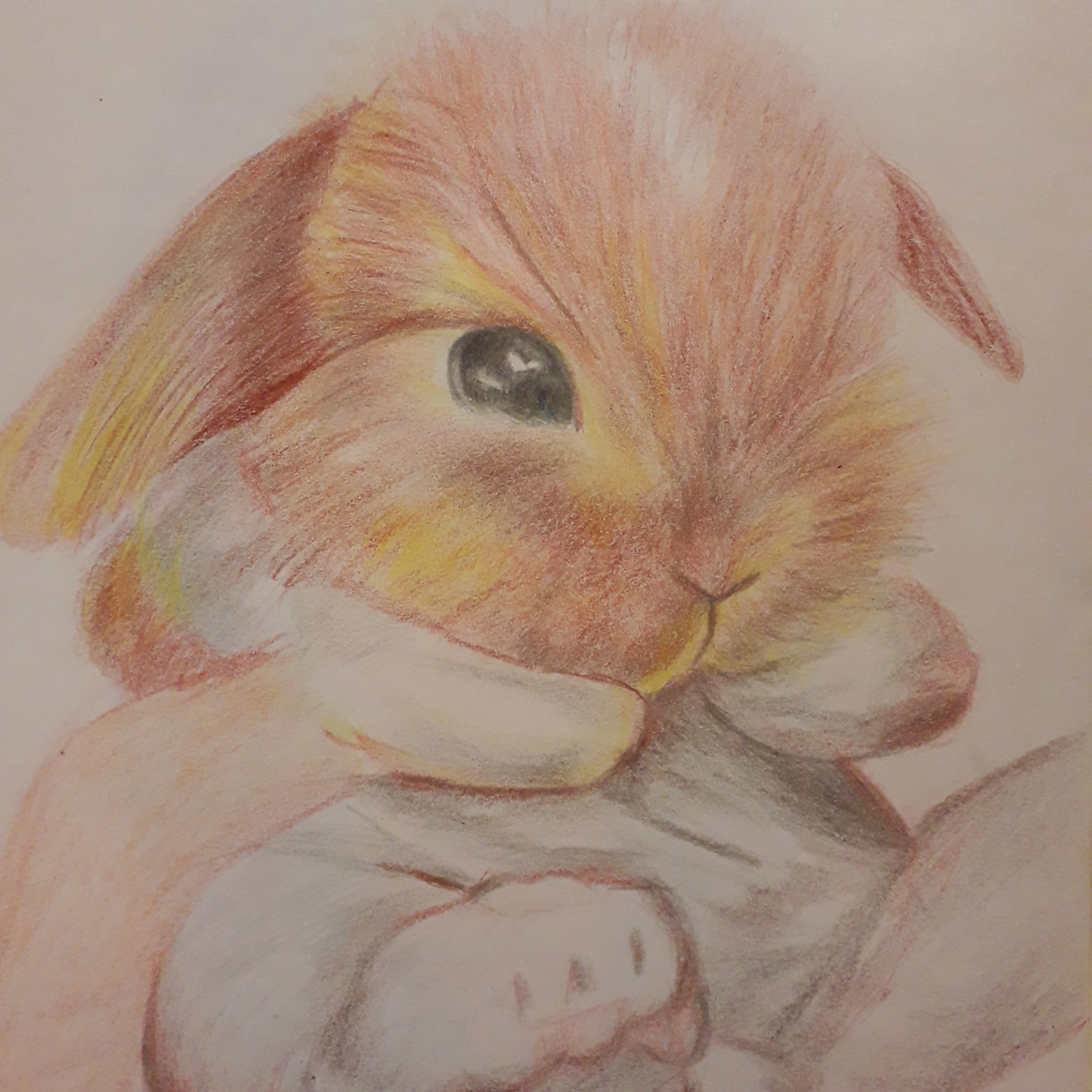 Al mes siguiente el ser desapareció del lugar, de modo que el conejo se sintió extraño, él quería seguir observándolo y analizándolo, lo extrañaba. Cuando se reencontraron, éste estaba fuera de su alcance, a una altura excesiva para su pequeño cuerpo…deprimido dio un paso atrás para darse la vuelta, cuando sin previo aviso una mano lo alzó. El conejito se pudo observar, y esta vez disfrutó de la imíagen completa porque supo lo que se sentía su ausencia.